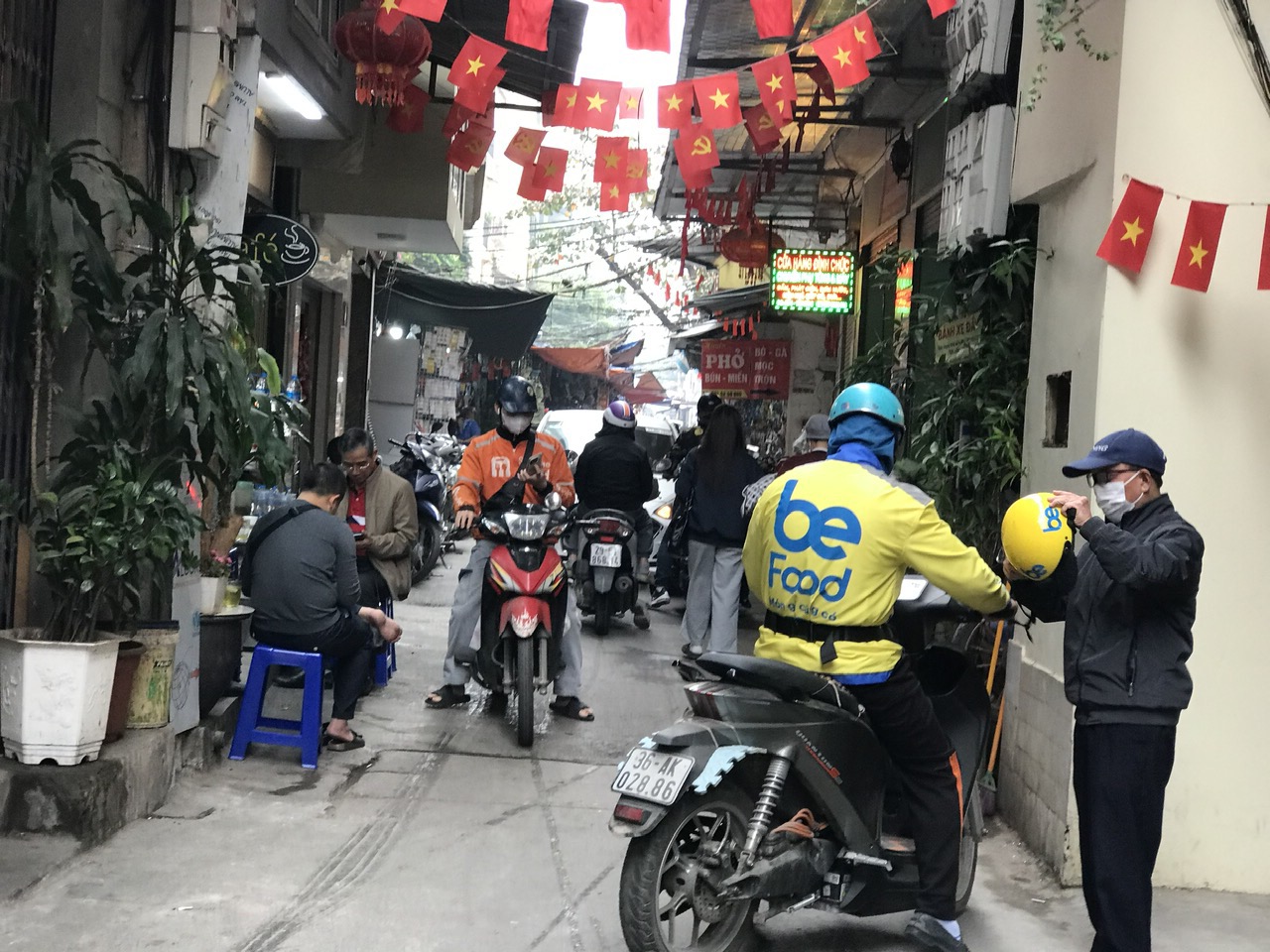 Không phải chợ theo nghĩa quen thuộc của các khu thương mại có quy hoạch mà là chợ bám vào ngõ, vỉa hè, vào từng mét vuông trống. Hàng hóa chồng lên nhau. Dây điện chằng chịt. Bộ hành. Xe máy. Hàng quán. Tiếng gọi nhau. Tất thảy hòa thành dòng cuồn cuộn.